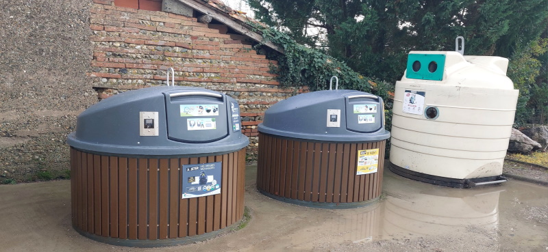 La communauté de communes a mis en place de nouvelles colonnes enterrées sur la place de la salle des fêtes qui s'ouvrent avec un badge spécial.